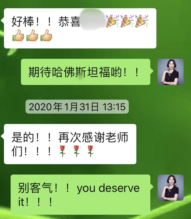 学生说“谢谢老师一直以来的帮助!你们是我留学申请路上的坚强后盾!”