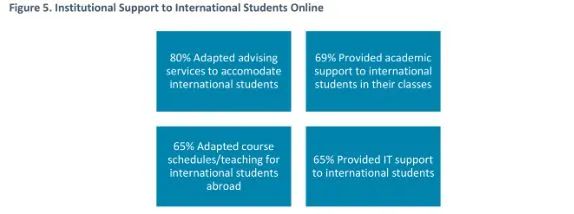 经过一年时间,各个高校为国际学生提供的支持范围不断扩大,超过70%的高校表示增加了与国际生在健康、福利等方面的交流,
