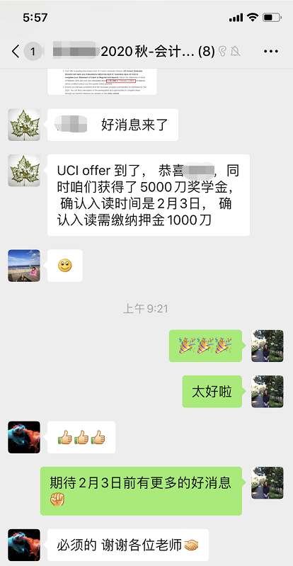 最终,结合学生的时间安排,我们确定了18参加面试。此后的时间,学生从我们的往年面经里进行学习和参考,还与我们文案老师进行一对一的面试模拟辅导工作,最终18号顺利完成面试,感觉很不错!因为学生面试结束,就是美国的圣诞+元旦假期,所以我们也就进入了等待期。果然,在结束公共假期后的一周内,加州欧文大学就给学生发来了录取,还有5000美金的奖学金!为P同学和新东方美研申请团队点赞!