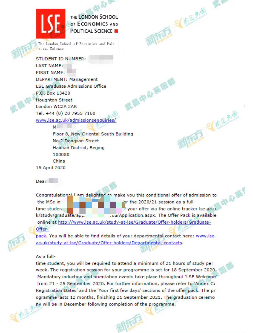 录取院校介绍:伦敦政治经济学院(The London School of Economics and Political Science),简称LSE或伦敦政经,1895年创立于英国伦敦 ,是享誉全球的公立研究型大学,为伦敦大学联盟成员和罗素大学集团成员 ,被誉为金三角名校 和G5超级精英大学。