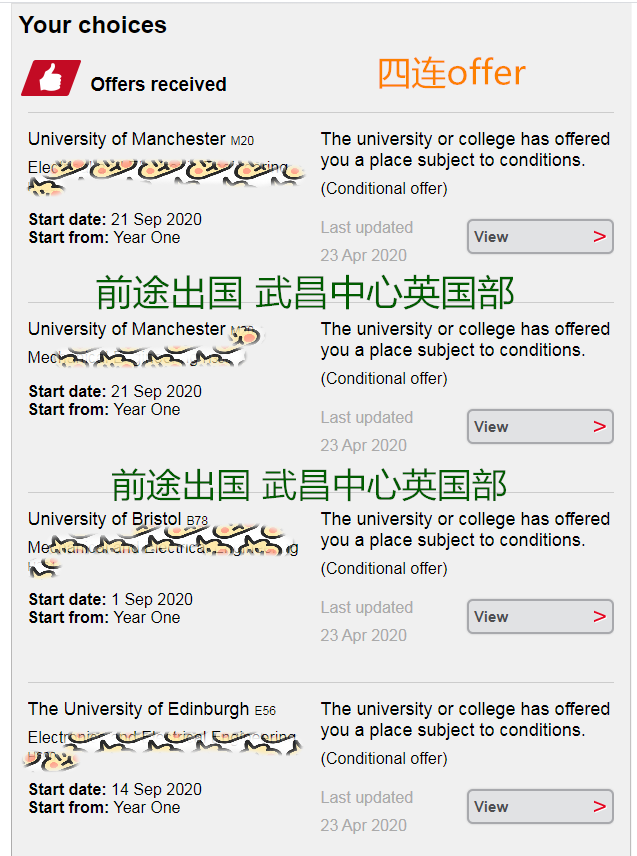 最后,在等签证住宿等环节,又紧锣密鼓的让学生补了申请本科的文书素材。等学生赴英读书以后,联系学校开出相关材料递交申请。最终在递交完UCAS系统以后,3~4月等来了曼大两个工科的offer,布里斯托、爱丁堡大学的录取,还有一所审理ing ~~~~