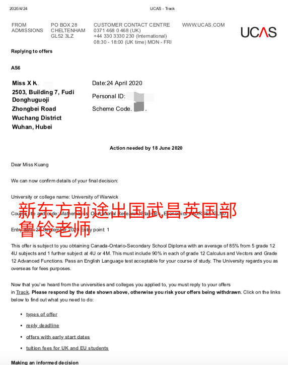 加拿大高中申请英国本科直读录取案例