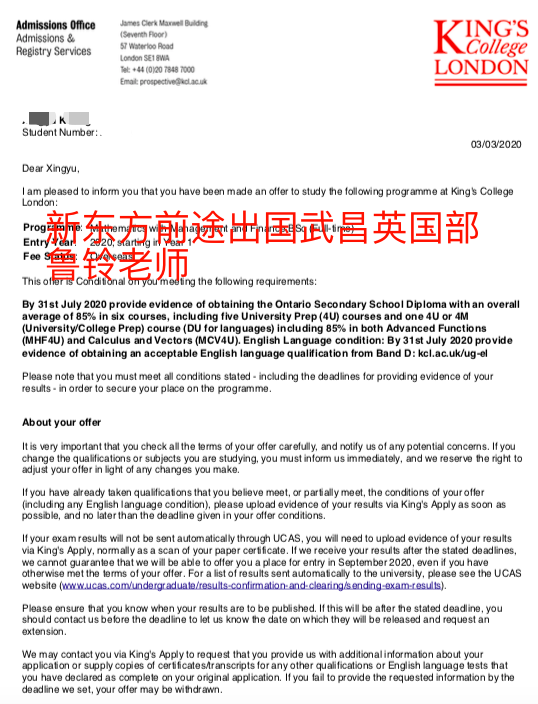 2、就读于国际高中体系的学生,可直接申请英国本科大一,今天这个案例就是这种情况。国内比较普遍的国际高中体系有:alevel,IB,AP,加拿大高中体系(其中加拿大高中因地域不同分为了几个不同的体系,我的这个学生是安省的)武汉国际高中这几种体系的都有。不过确实在国外就读会更具有竞争一些,我这个学生是本来就读于国内国际高中,但是因为成绩不理想,所以后来转学到加拿大读的高中最后一年。