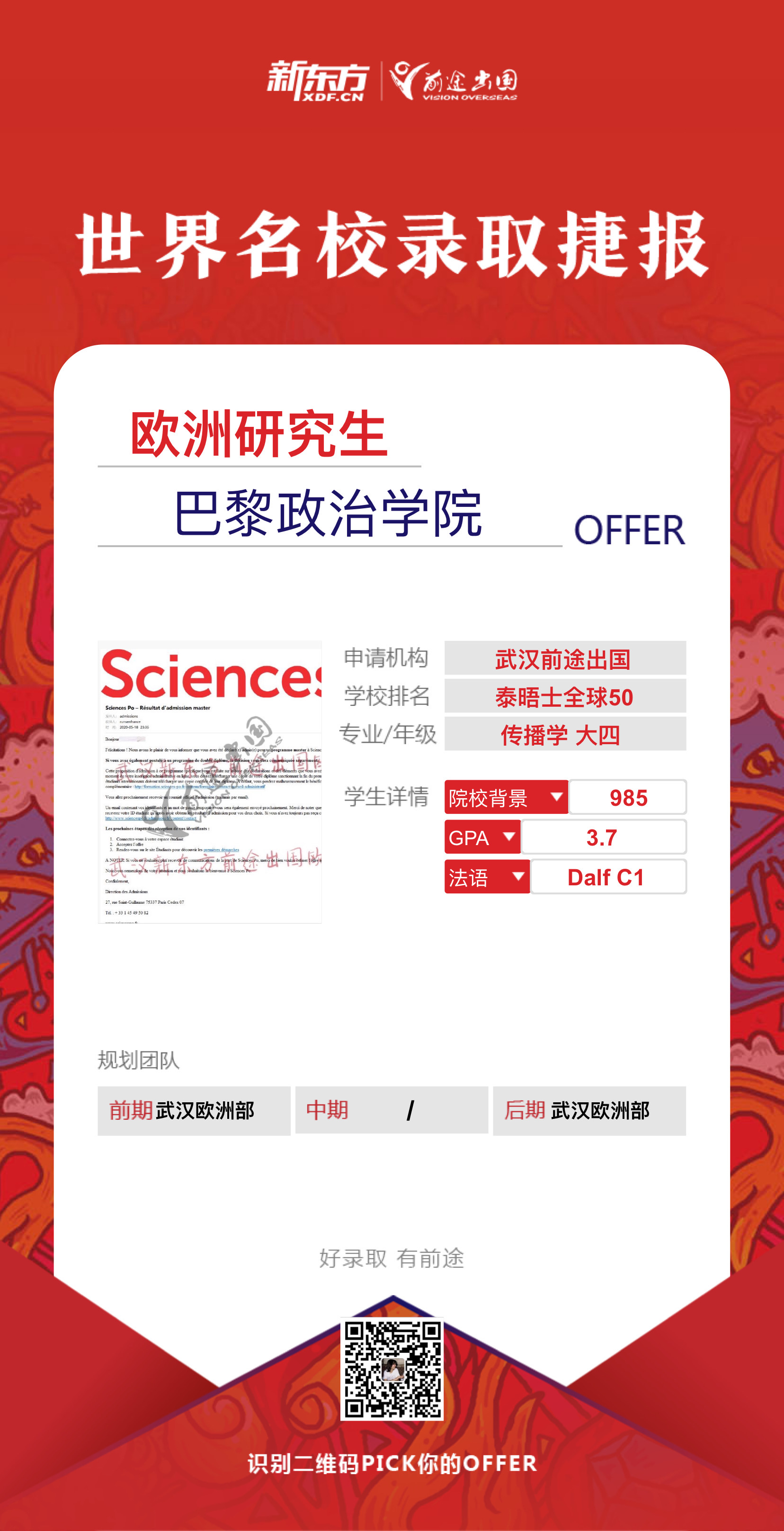 当时学生的法语和法国留学是同时在武汉新东方定的,