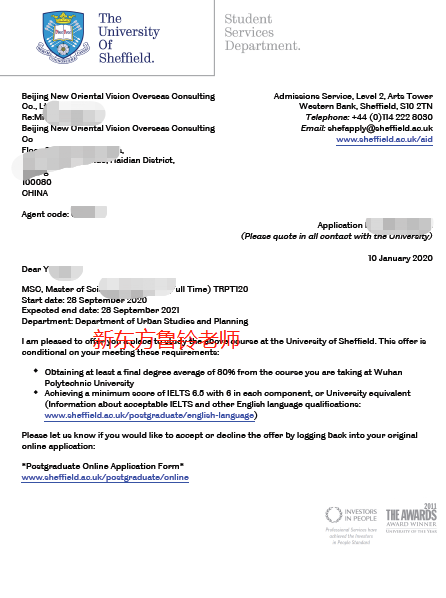 我们最早拿到录取的是谢菲尔德大学,是一月份来的录取,学生非常开心,其实学生一开始咨询的时候说有书读就可以了,还想着考虑那种排名300以后的学校呢。