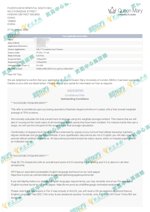 而就在当天下午,又再次等来了伦敦大学玛丽女王学院投资金融的录取,双喜临门!