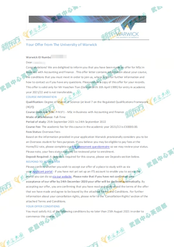 目前学生已经向华威大学提交了留位费押金。再次祝贺学生,希望T同学未来能够披荆斩棘,在新的人生起点上,再创佳绩!