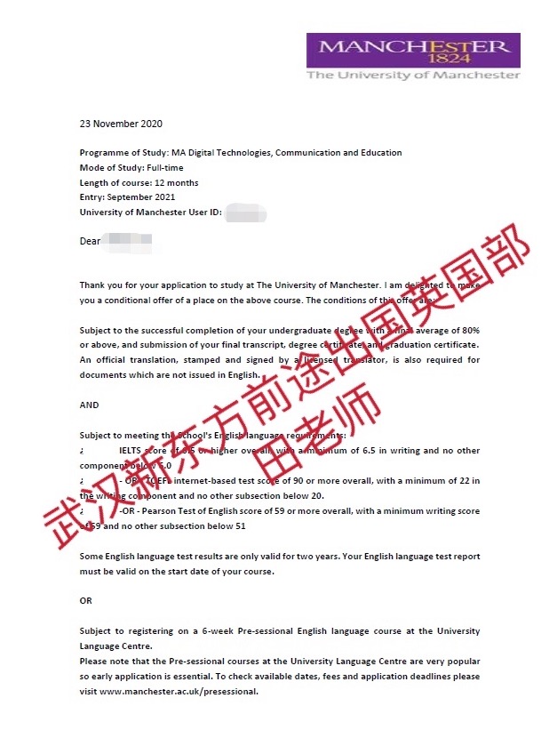 J同学早在大一时就树立了要出国留学的目标,本科就读于金融专业,但是J同学对传媒专业非常感兴趣。大二时与新东方前途出国武汉分公司签订英国研究生申请合同,明确了申请传媒专业研究生的目标。在我们的规划指导下朝着心中的Dream school努力。经过1年多的的规划期,于2020年9月递交申请。录取到自己的目标院校:曼彻斯特大学。