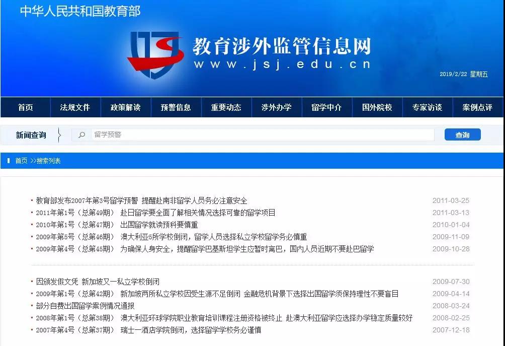 为了帮助大家查验真伪,大家可以访问教育部教育涉外监管信息网www.jsj.edu.cn,可查51个国家正规院校名单&几百家教育部认证的各地留学中介机构名单。