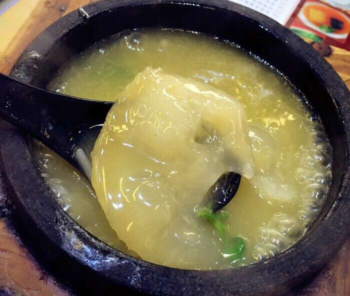 他家出彩之处在于鱼翅的汤底,用鱼翅、老母鸡和花胶文火熬制,非常粘口。连几十块的平价鱼翅都是用此汤底,让我想到“食材不分贵贱”一说。建议单点一碗白米饭佐食,端上桌的石锅趁着冒烟搅一搅,如果觉得吃着太腻就滴几滴浙醋,味觉又被再次唤醒。