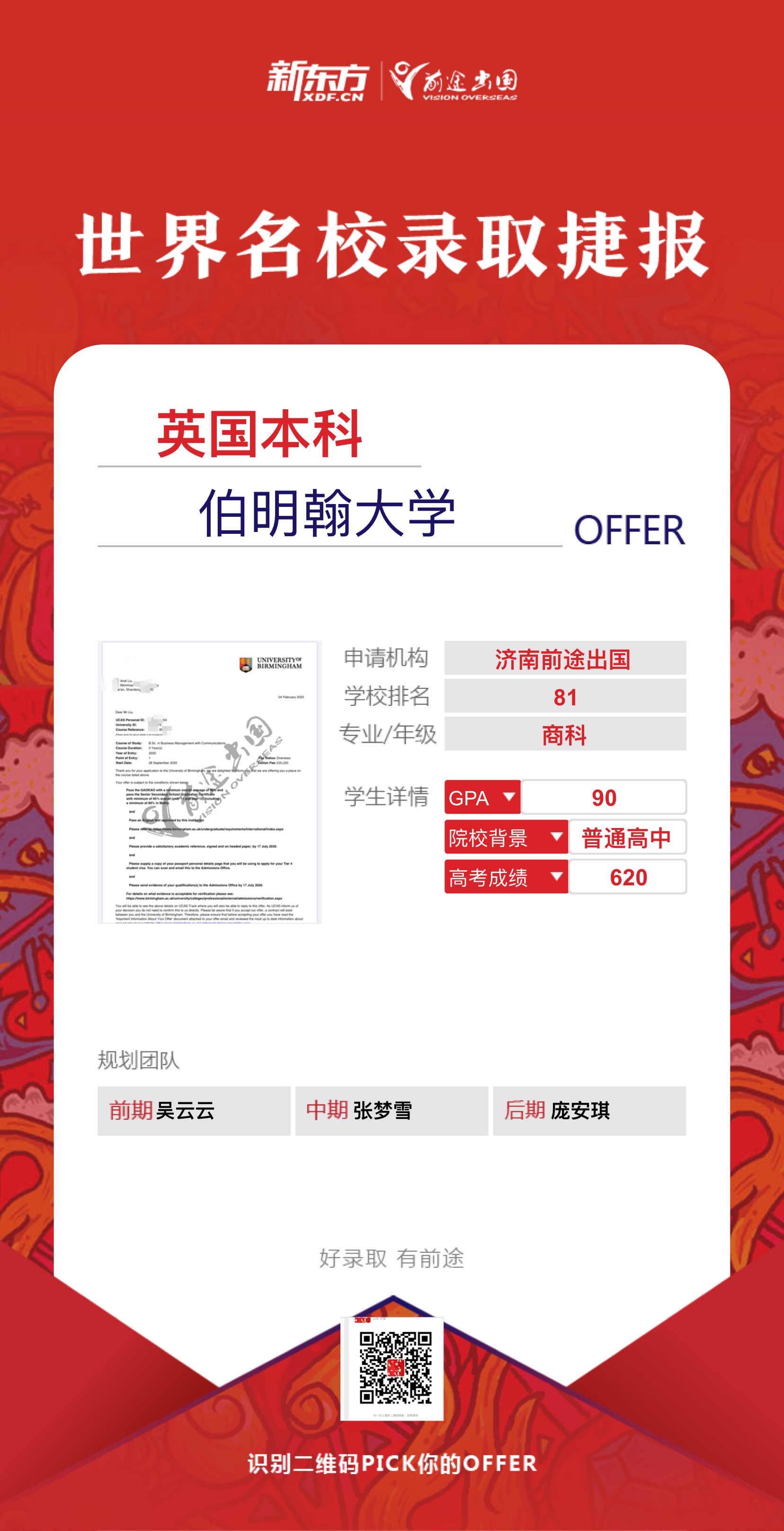 高考分数直申英国伯明翰大学offer案例分享