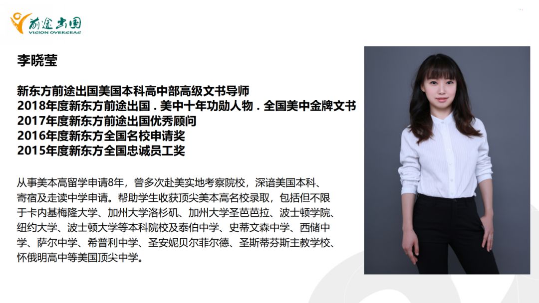 另外,在与学校的往来沟通中,我们也向学校传达了学生家庭热切的入读意愿。美国中学非常看重学生家庭的入读意愿,一般来说,在同等竞争条件下,对学校意向非常明确的家庭,也会更受学校的青睐。