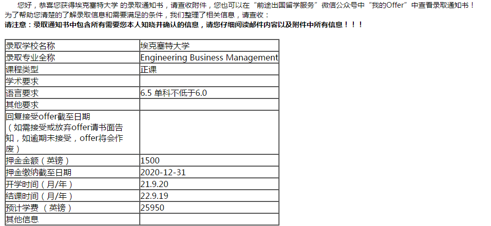 学生对于我们的信任感非常高,暑期敲定好留学事宜之后,我们就开始准备材料进行申请,同时学生准备雅思学习。上周非常开心,英国这边我们已经拿到埃克塞特大学录取,同时又传来个非常好的消息,经过3-4个月的雅思学习,最新雅思出分,总分6分,小分5.5分。香港这边我们也可以先提交港理的申请。