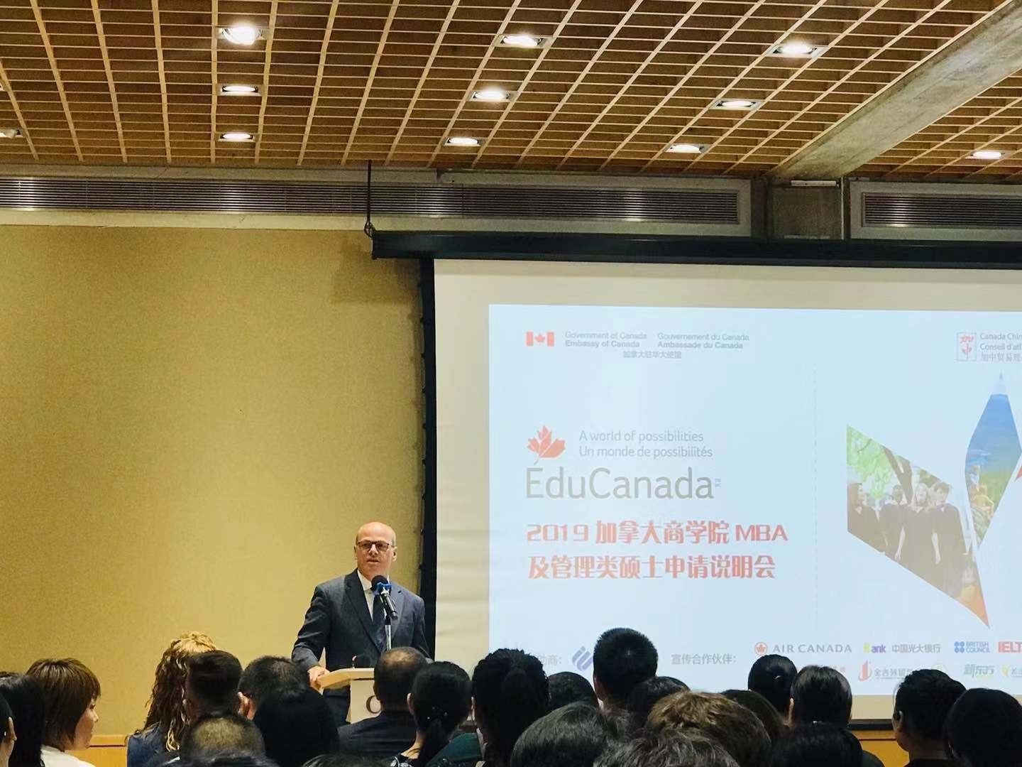 活动以中加理事会和使馆官员严谨又不失幽默的致辞开始,之后使馆教育官就加拿大留学优势,学生签证和快速移民政策等内容预热全场,最后6所加拿大知名商学院的精彩演讲将说明会推向高潮。