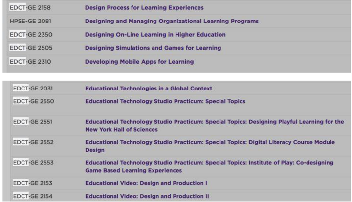 纽约大学本身即以 art and media 闻名,所以纽约大学的教育技术项目十分偏传媒技术;此项目两年,足够一个勤奋的技术小白成长为 instructional technologist 了,很多毕业生从事了 UI/UX 方面的工作。