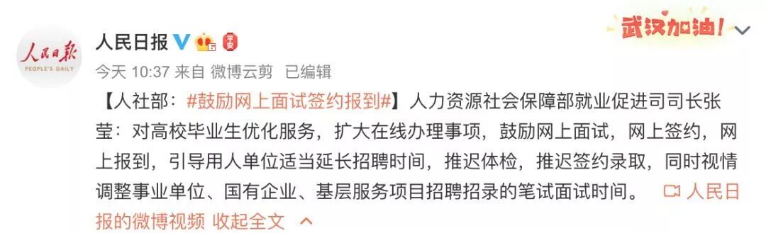 不只是学校,为了协助疫情防控,全国各大企业已经陆续取消了线下宣讲会行程,人社部也鼓励网上面试签约报到,引导用人单位适当延长招聘时间。