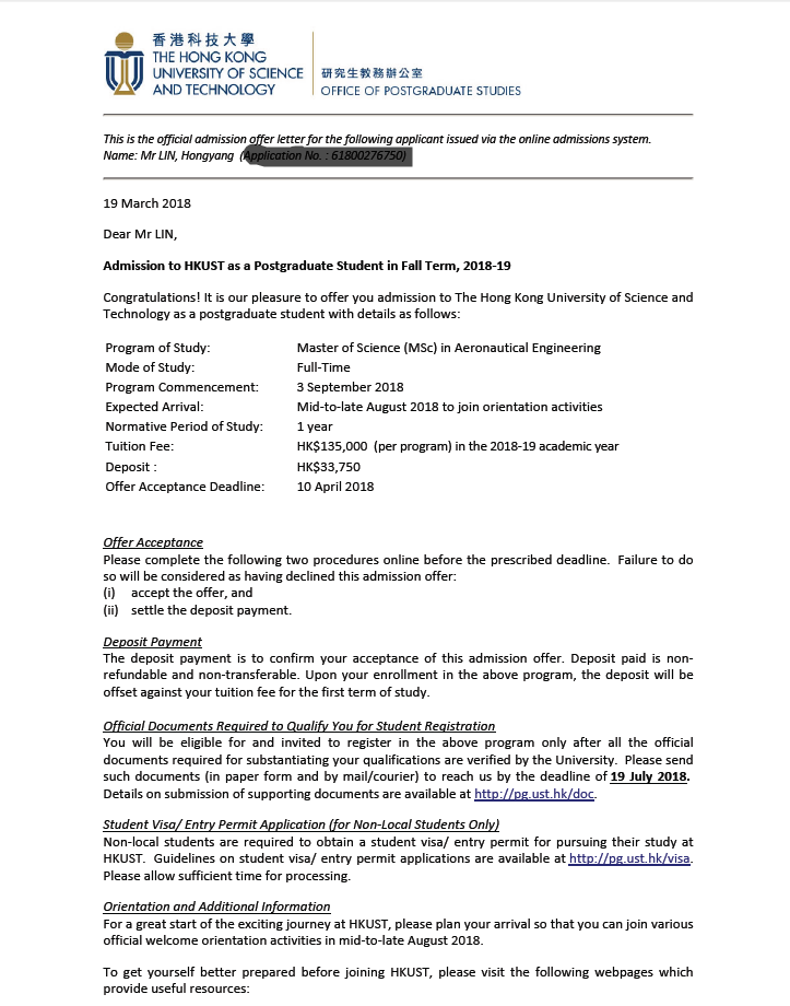 华工,机械工程,2年相关专业工作背景,雅思6.5,1月申请,2月录取。