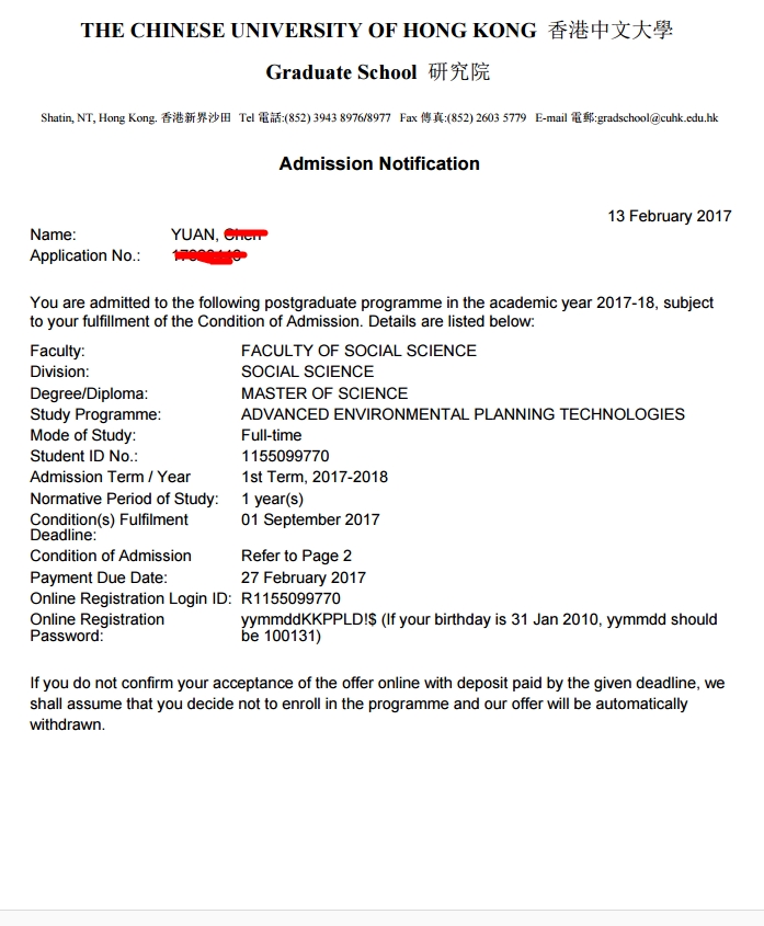 2本院校,本科读规划类专业,雅思只有6,提交申请拿到港中文的有条件录取,最终努力考上6.5。