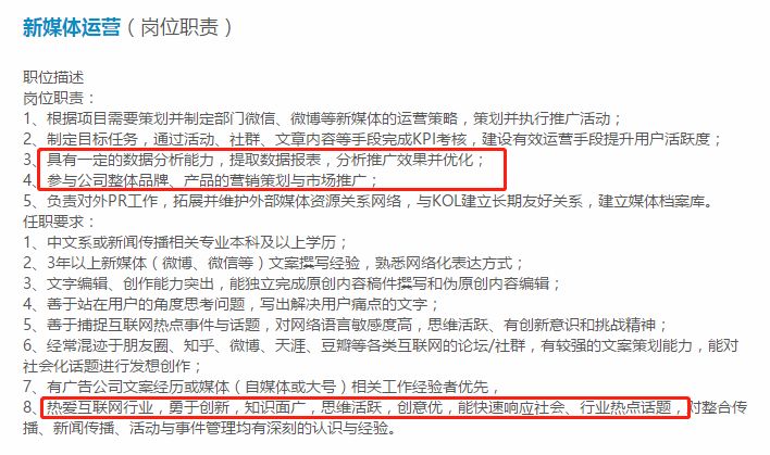 * 新媒体运营岗位JD