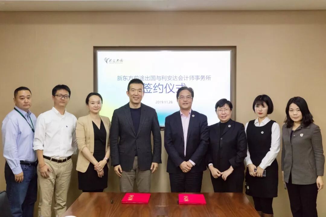 2019年11月28日,“新东方前途出国与利安达会计师事务所战略合作签约仪式”在新东方教育科技集团举办。新东方教育科技集团助理副总裁,新东方前途出国总裁孙涛、利安达国际会计网络董事局主席,利安达会计师事务所合伙人黄锦辉及双方重要代表出席了本次签约仪式。