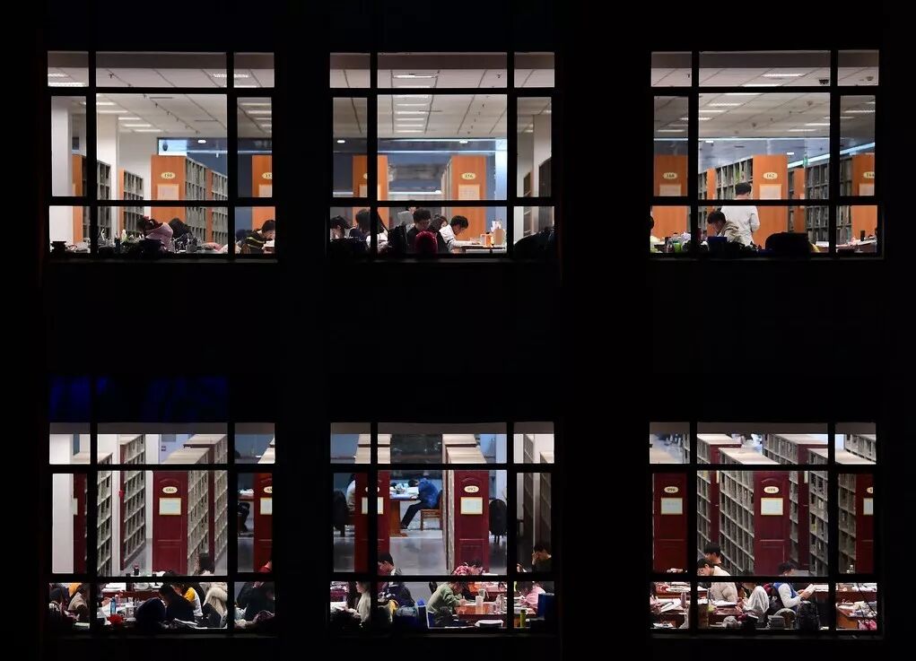 沈阳的考研学生在图书馆内看书复习,距离研究生考试不足5天时,考生进入最后“肉搏”冲刺阶段 / 希帕图片社