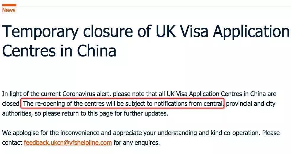 继2月3号后,英国签证中心又更新了最新的安排——位于中国境内的签证中心将全部无限期关闭!