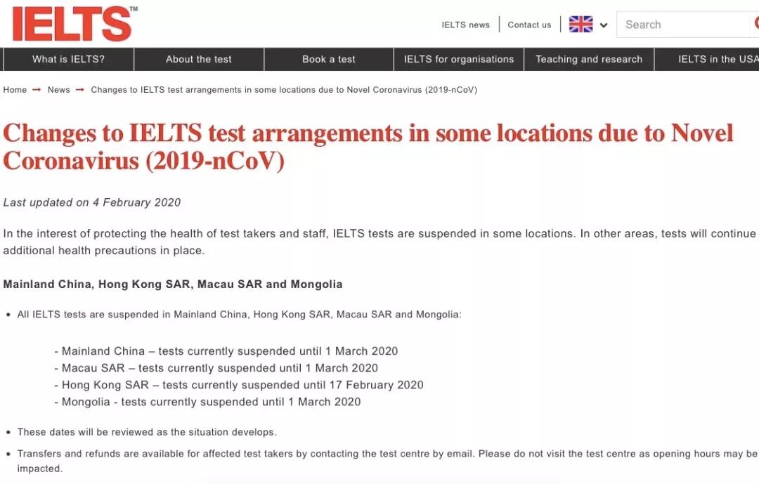 果不其然,2月14日雅思官方宣布取消中国大陆范围内3月份的全部考试!