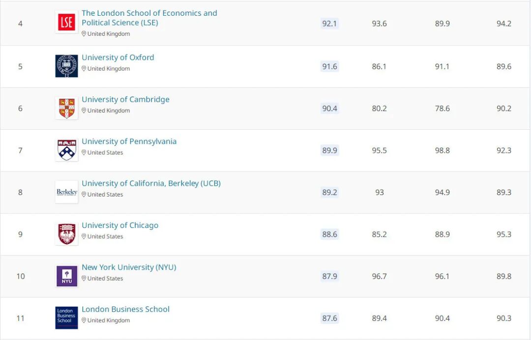 根据最新的QS2020年财会金融领域全球排名,TOP10排名依次为:哈佛大学、 麻省理工学院、斯坦福大学、伦敦经济政治学院、牛津大学、剑桥大学 、宾夕法尼亚大学、加州大学伯克利分校、芝加哥大学、纽约大学(NYU) 。