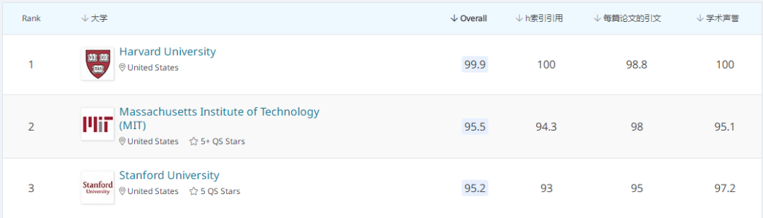 首先我们来看下五大教学领域的世界前十名: