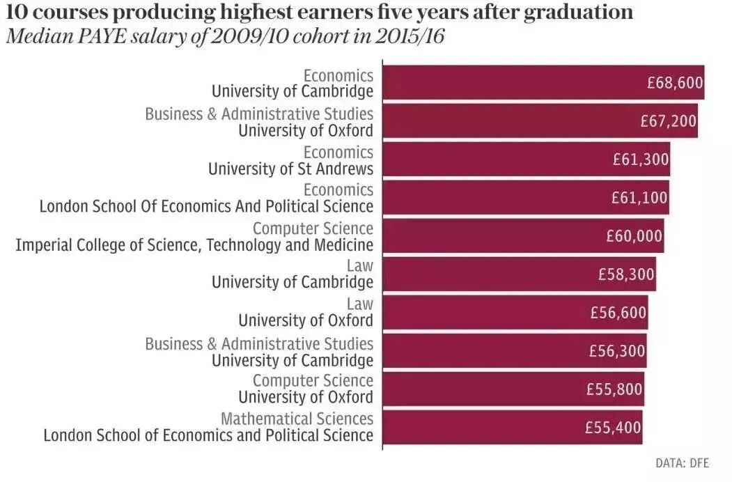 * 英国教育部统计了各大高校毕业5年后最能赚钱的10个专业,商科阵营包揽前四