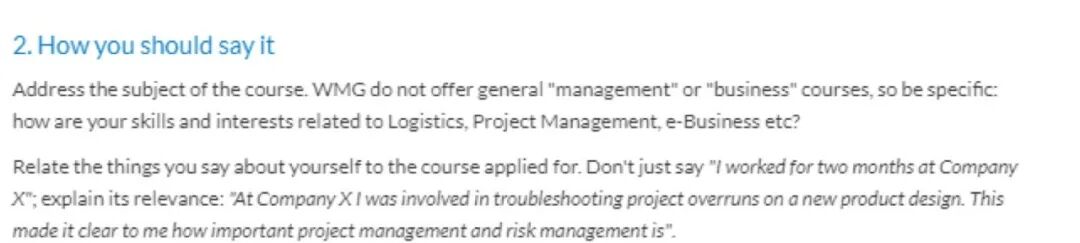 具体的小tips学校也给列了出来,可以参考WMG学院的官网: