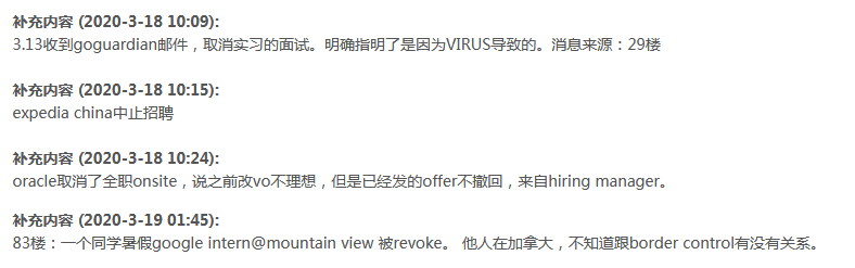 据GitHub统计,目前已有超过20家公司推迟或取消Summer Internship,不少留学生也因此受到波及,实习/全职offer被直接撤回: