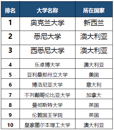 新西兰奥克兰大学连续两年蝉联榜首