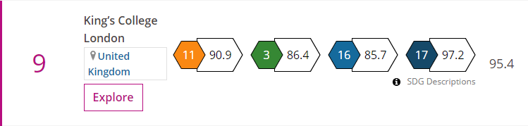 据泰晤士高等教育官方解释,THE世界大学影响力排名是一个基于联合国可持续发展目标(the United Nations’ Sustainable Development Goals)来评估全球大学的排名。目前此份排名包含世界范围内85个国家和地区的766所大学。