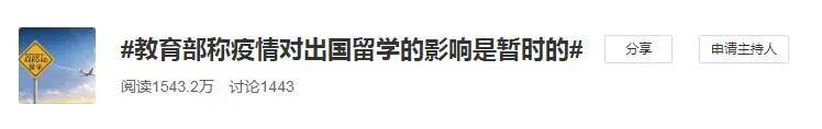 #教育部称疫情对出国留学的影响是暂时的#、#教育部将为留学人员组织招聘活动#两个话题在Weibo上也引起了广泛讨论。