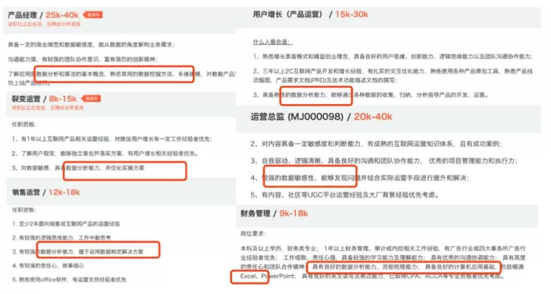 当今这个大数据时代,任何行业、任何岗位都在大量接触数据,企业对数据分析的重视程度也是空前的,逛下招聘网站,随便点开10个岗位,有9个都要求有数据分析能力: