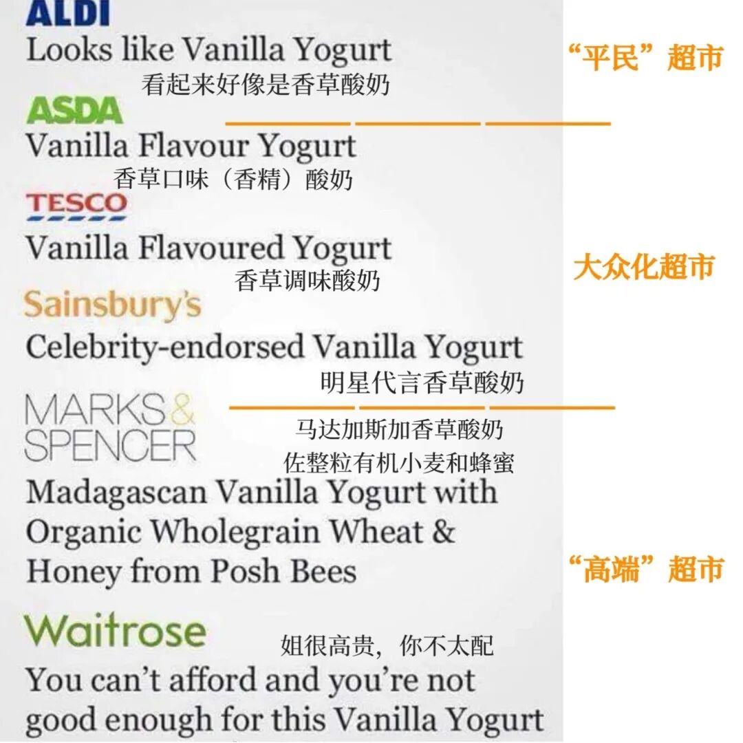 英国常见超市非常多,价格差异也比较大,有“平民”超市也有“高端”超市。相信在英国留学的朋友们都听说过“英国超市鄙视链”吧?一张图带你看懂超市之间商品品质和价钱的差异。