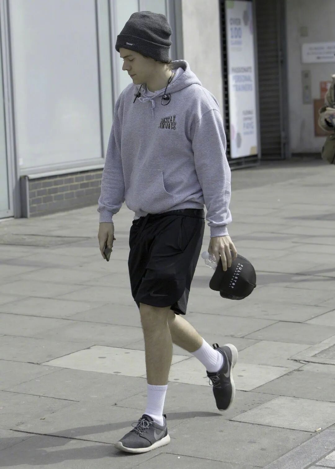 如果有不怕冷的同学也可以视情况考虑Harry Styles哈卷的同款穿搭,稍微保暖的帽衫和短裤。