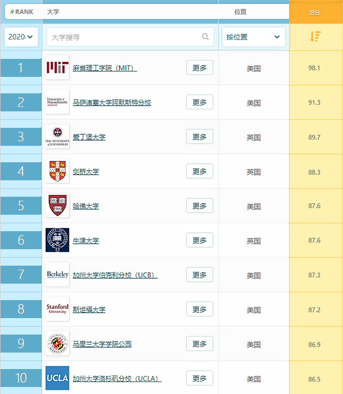 完整版排名链接:https://www.topuniversities.com/university-rankings/university-subject-rankings/2020/linguistics