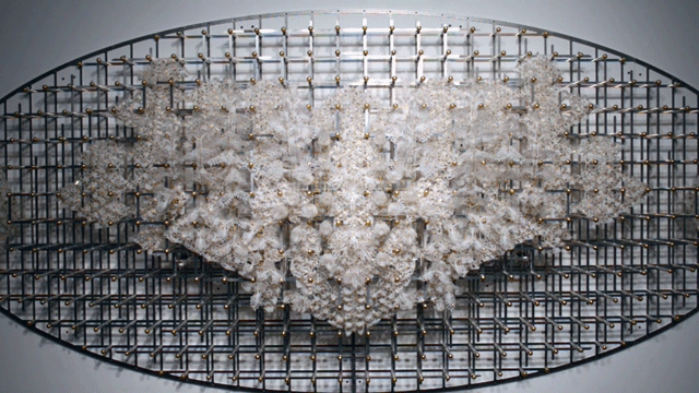他用金属丝、激光切割的丙烯酸、铝以及精心雕刻的黄铜构建出这个雕塑环境,专注于机械动力的设计的Casey Curran,在马达或手摇系统的帮助下,模拟出了大自然中生命的常态。