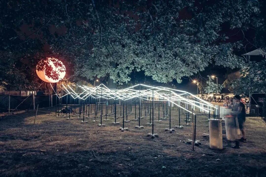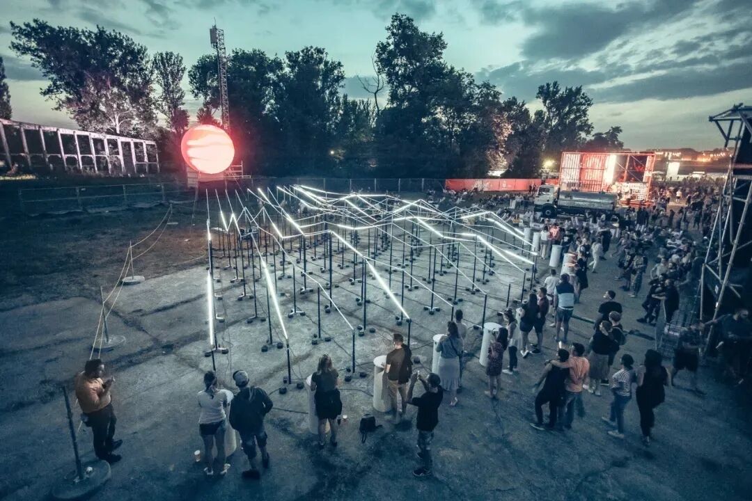 其实这是 Meskie Granie 2019 音乐节上,波兰新媒体艺术团创作的一件互动灯光装置:The Lightwaves(光之波)。