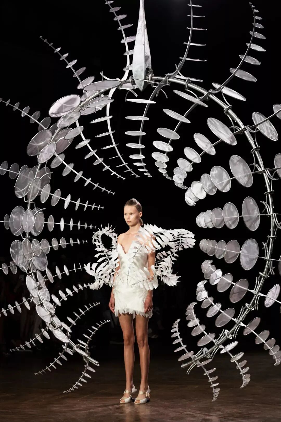 20年前麦昆将机械手臂、3D全息影像等高科技带到展台上,借助科技手段呈现的时尚艺术,此后设计师们也打通了科技与艺术设计的通道,开创出新的时尚美学。