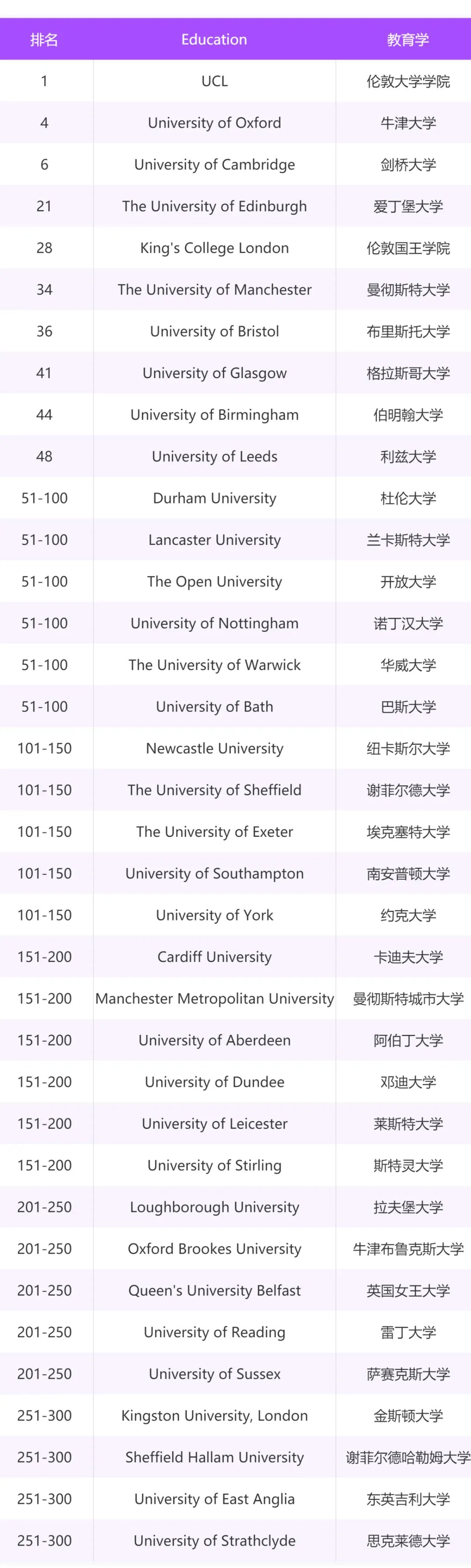 4 QS世界大学教育学专业排名-英国部分