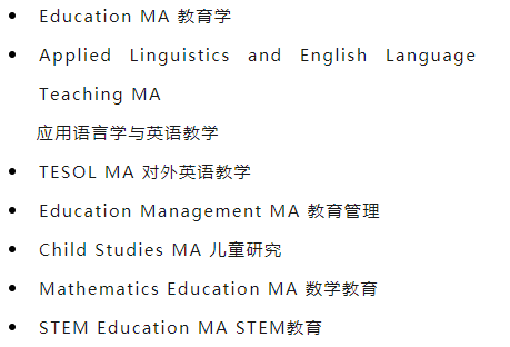 曼彻斯特大学的教育相关专业列举(部分):