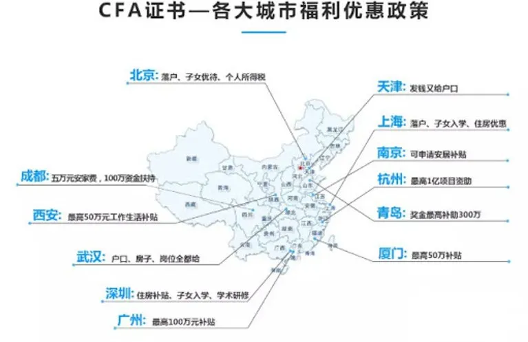 介于国内范围内对于高端金融人才的高需求量,为留住高层次、高水平专业人才,各大城市推出了各项福利政策。包括北上广深等城市在内明确指出向CFA人才。