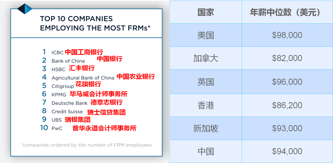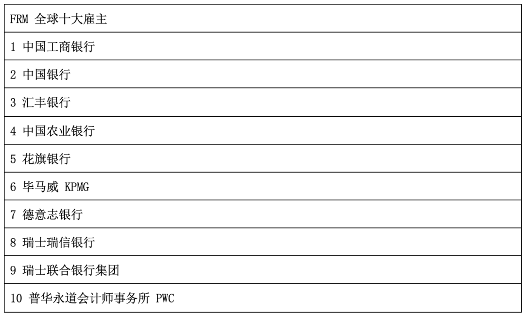 FRM全球前雇主TOP20主要由国际TOP的商业银行、投资银行、四大会计师事务所都位列其中。