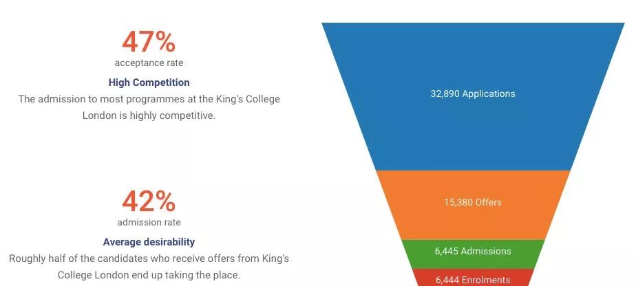 统计数据显示,KCL的研究生录取率平均在47%左右。