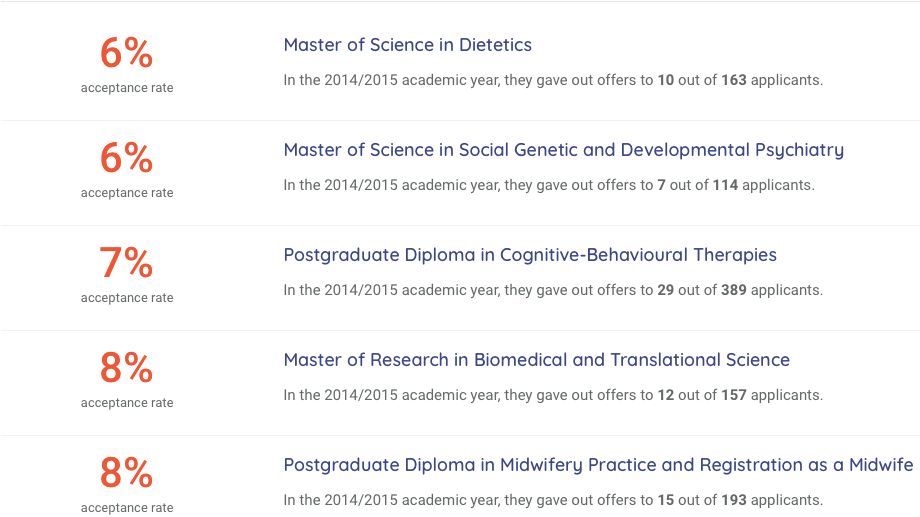 看看这鲜红的6%的申请成功率,雅君老师哆哆嗦嗦地可真不敢说KCL好申请。