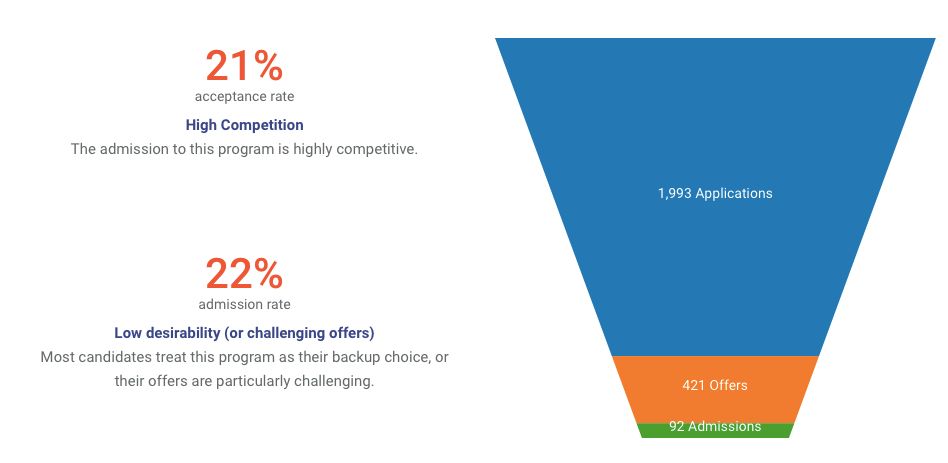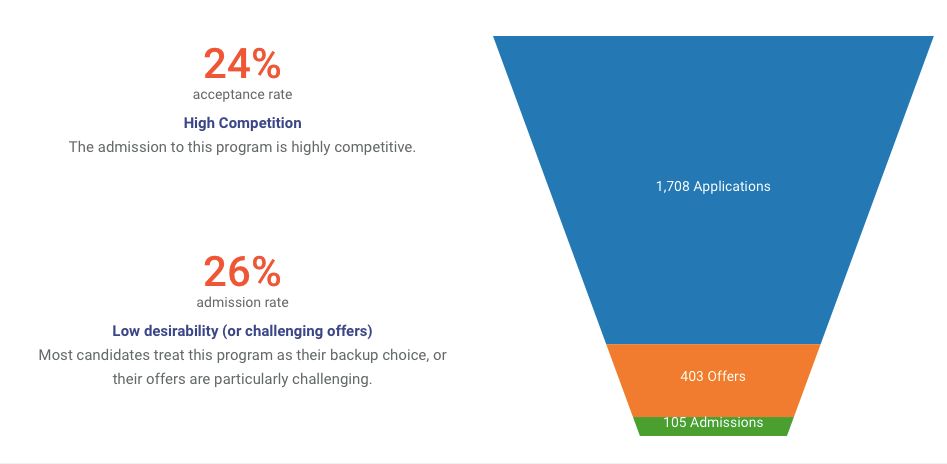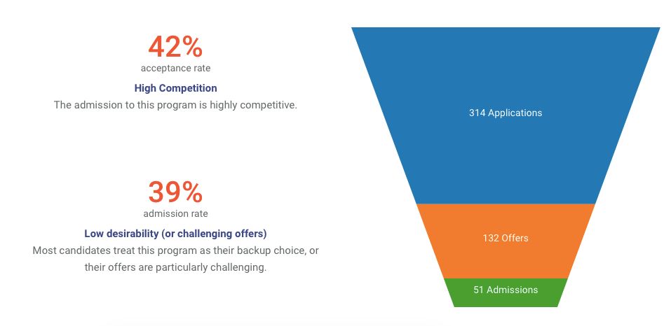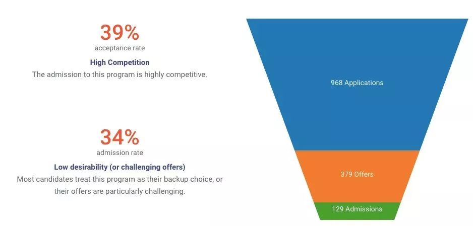 因为「申请人数」越多,竞争压力也就越大。这就是为什么有的同学即使成绩达标,却还是被拒——因为其他申请的同学比你背景更好。