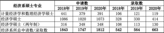 按近年的申请热度看,依次是经济学硕士、计量经济学和数理经济学硕士、经济学硕士(两年制),其中经济学硕士在这三年的申请人数都逾千人。各专业3年内以及系所总体的申请人数都在一定范围内浮动,变化不大。